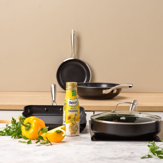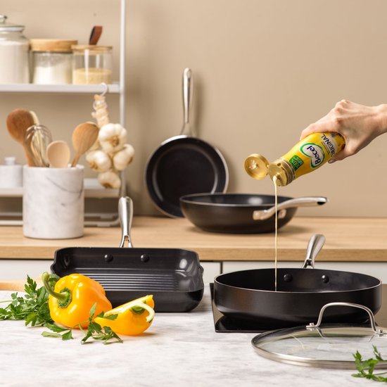 De aluminium constructie zorgt voor een snelle en gelijkmatige warmteverdeling, zodat je ingrediënten gelijkmatig worden gebakken, wat zorgt voor een beter kookresultaat en meer controle tijdens het koken.