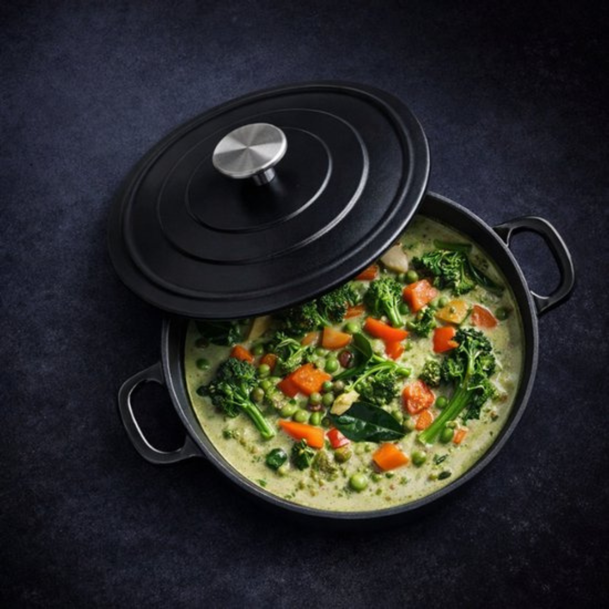 De braadpan heeft een inhoud van 3,3 liter, waardoor hij geschikt is voor het bereiden van maaltijden voor meerdere personen. Het stevige zelfbedruipende deksel zorgt ervoor dat vocht tijdens het koken gelijkmatig over het gerecht wordt verdeeld, wat bijdraagt aan sappige en smaakvolle resultaten.