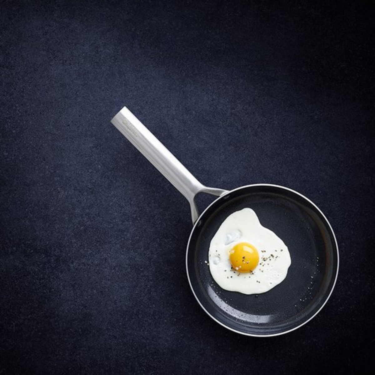 Daarnaast is de pan voorzien van een stevige roestvrijstalen handgreep, waardoor hij comfortabel en veilig in gebruik is. De koekenpan is geschikt voor alle warmtebronnen, waaronder gas, elektrisch, keramisch en inductie, en kan daardoor in vrijwel iedere keuken worden gebruikt.