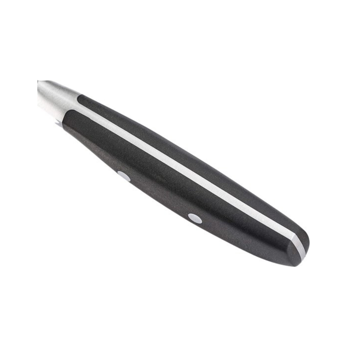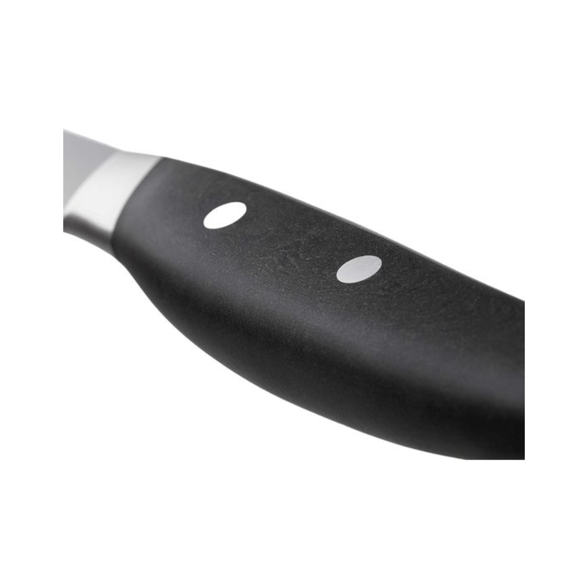 De ergonomische handgreep is gemaakt van een duurzaam materiaal dat bestaat uit houtvezels en hars, wat zorgt voor een stevige en comfortabele grip tijdens het snijden. Hierdoor ligt het mes stabiel in de hand en biedt het optimale controle bij zowel snelle als precieze snijbewegingen.